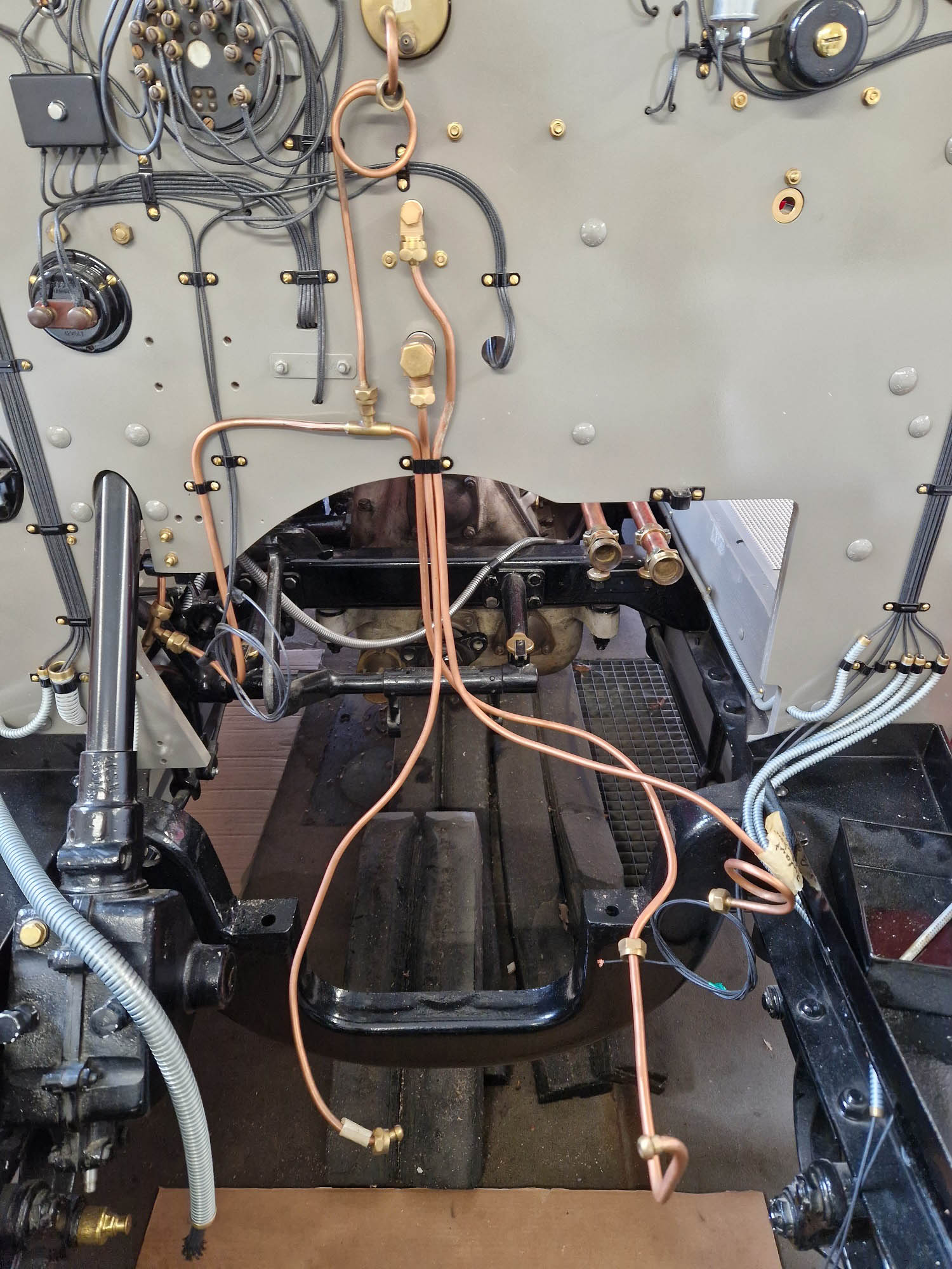 Des Weiteren wurden in den letzten Wochen schon einige Vorarbeiten für den Einbau des Motors durchgeführt. Die Leitungen für Luft und Kraftstoff werden gerade angepasst und vorbereitet. Außerdem haben wir die manuelle Luftpumpe, die an der Lenksäule montiert wird, wieder hergerichtet und funktionsfähig gemacht. Das Luftsystem sorgt für einen leichten Überdruck im Kraftstofftank und gewährleistet so, dass der Kraftstoff den Weg zum Motor findet.