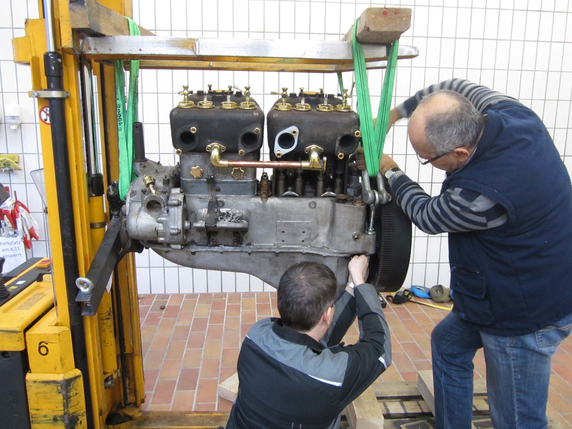 So können wir zum einen den Motor auf Schäden überprüfen und auch die Ölwanne gründlich reinigen. Kurbelwelle, Pleuel und Nockenwelle sind nach ersten Untersuchungen in einwandfreiem Zustand. Der Brand konnte dem soliden Aufbau des Motors nichts anhaben. Die fast 90 Jahre sieht man der Mechanik des Motors nicht an, was mit Sicherheit auch der geringen Laufleistung bisher zu verdanken ist. Die Ölwanne wurde innen komplett gereinigt und wird beim Zusammenbau später mit neuen Dichtungen versehen.