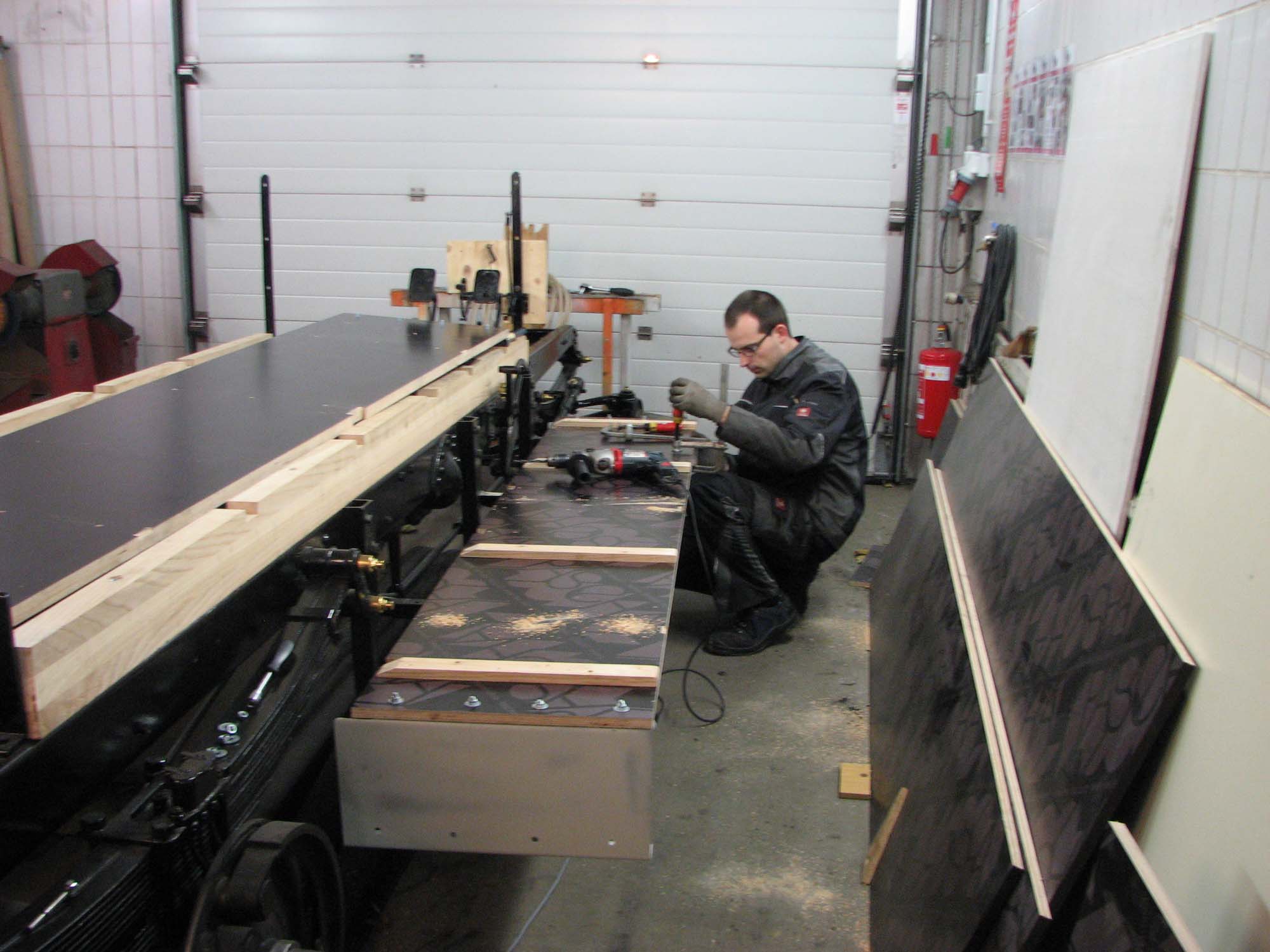 Mittlerweile wurde damit begonnen, die unteren Kästen, die zur Lagerung von Saugschläuchen und Armaturen dienen wieder herzustellen.
