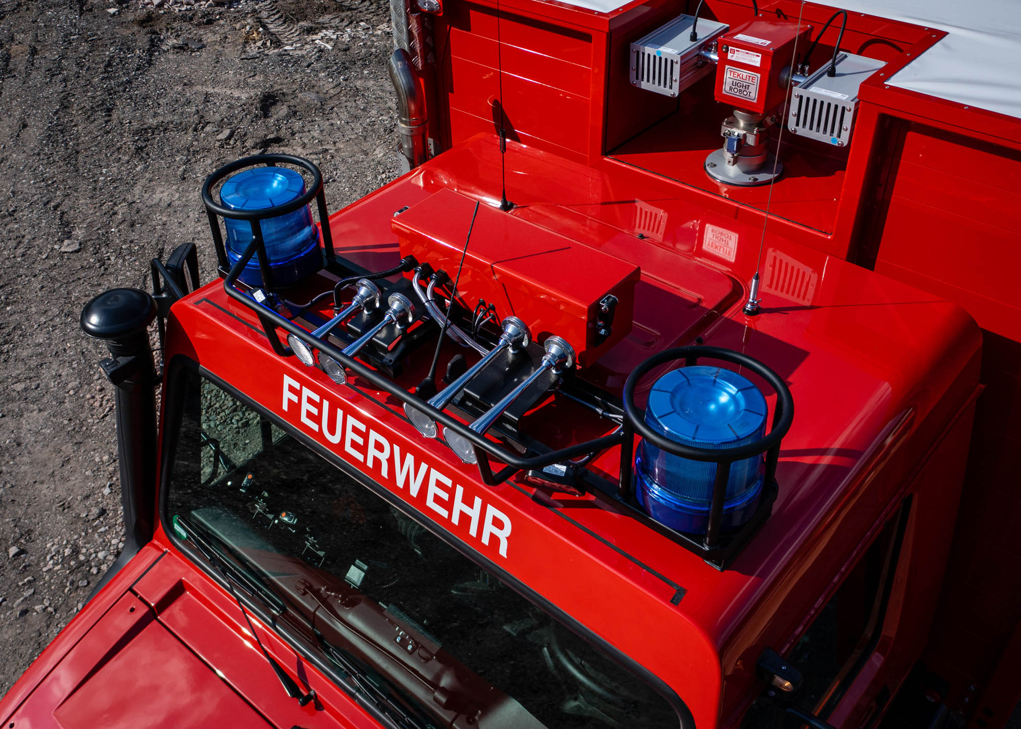 • Für die Einsatzstellenausleuchtung wurde ein Lichtmast montiert