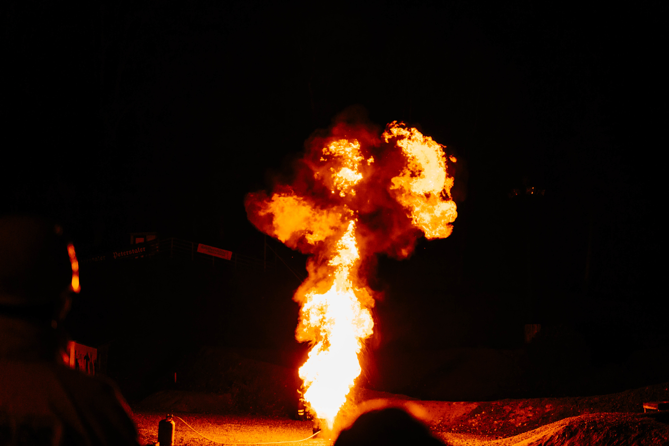 Zum einen wurden eindrucksvolle Fettexplosionen und ein Metallbrand gezeigt, während beim Feuerwehrgerätehaus kleinere Experimente zum Ausprobieren einluden. Was passiert mit Gas, das schwerer als Luft ist, wie lösche ich am besten ein Feuer oder warum brennt Benzin so leicht? All diese Fragen konnten im Laufe des Abends beantwortet werden. Außerdem konnte so spielerisch auf die Gefahren im Umgang mit Feuer hingewiesen werden.