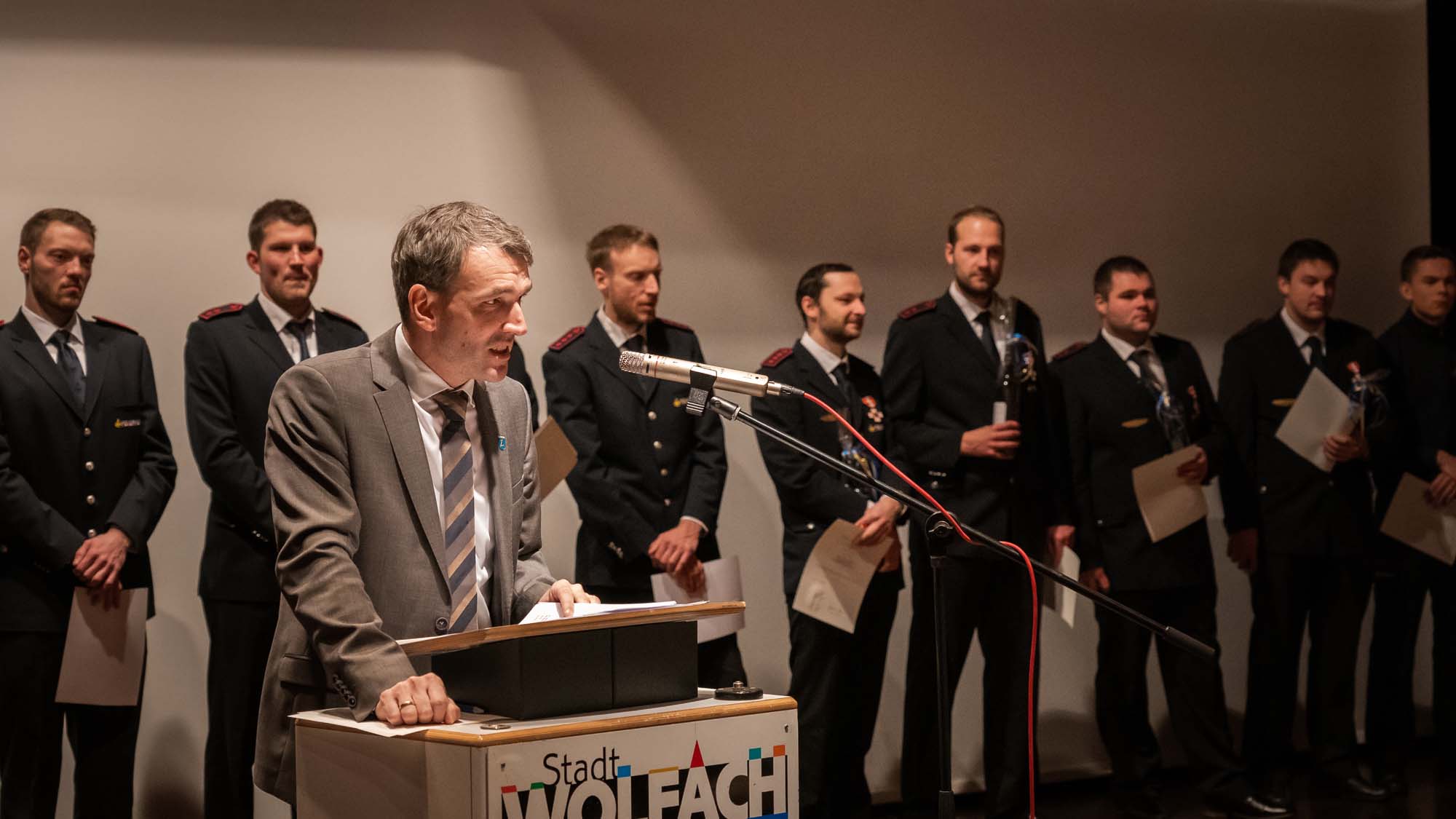 DSC03392In seiner Ansprache ging Kommandant Christoph Mayer auf die vergangenen zwei Jahre ein, welche zwar deutlich durch die Corona Pandemie geprägt war, aber dennoch keinen Stillstand für die Feuerwehr Wolfach bedeutete. So konnte unter anderem im Gerätehaus Wolfach die Umkleiden von der Fahrzeughalle in separate Räume verbracht werden. Großen Dank zollte er den Partnern der Kameraden und den Arbeitgebern, ohne deren Verständnis dieser Dienst nicht möglich wäre.