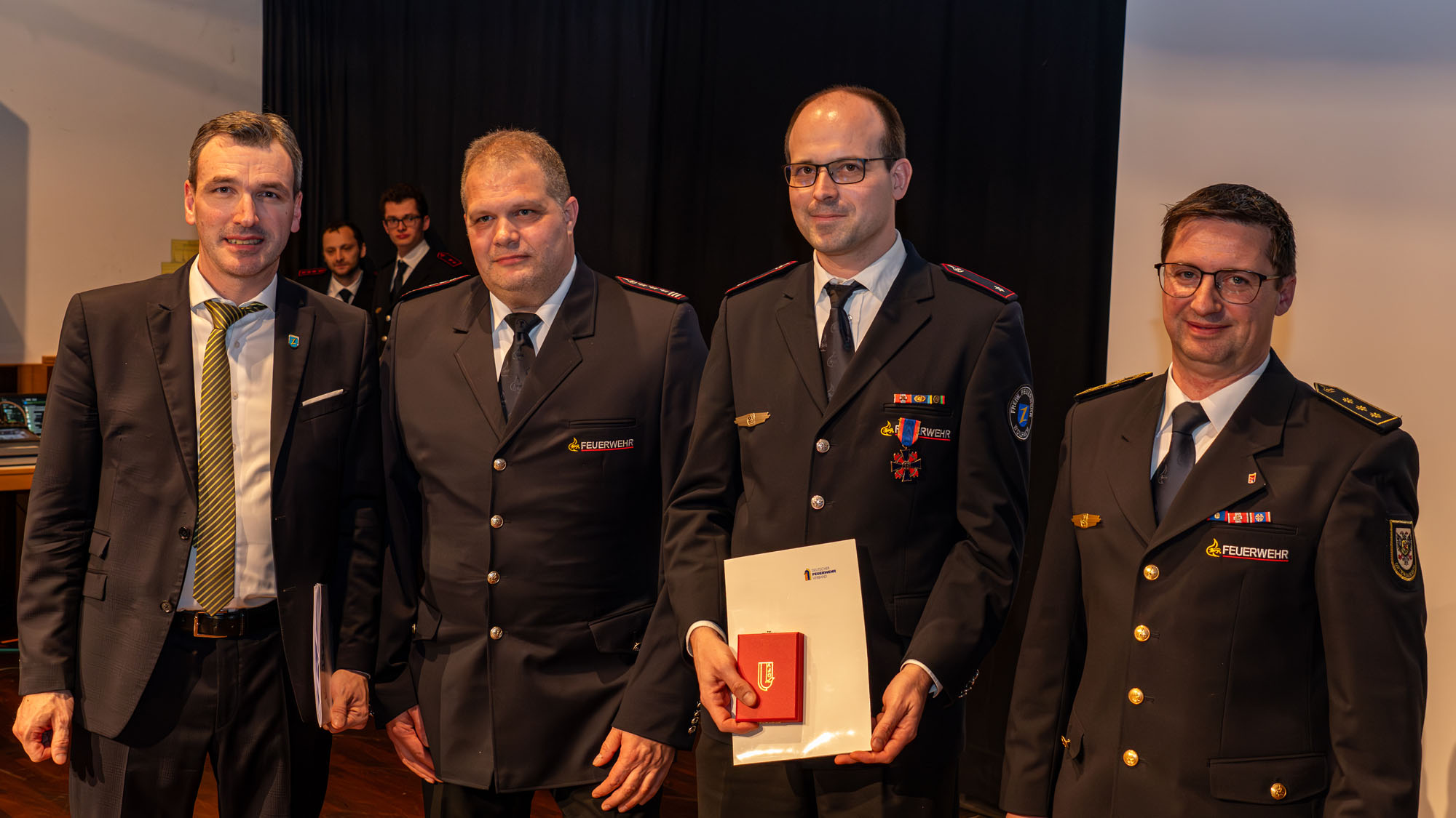 Die Verleihung zahlreicher Ehrungen und Beförderungen rundete den Abend ab. Dabei wurde Joachim Oberfell eine besondere Ehre zuteil. Als Hauptverantwortlicher und „Hauptschaffer“ bei der über elf Jahre andauernden Restauration des abgebrannten „Alten Benz“, sowie um seine Verdienste als langjähriger Jugendfeuerwehrwart wurde ihm durch Kreisbrandmeister Bernhard Frei das Deutsche Feuerwehr-Ehrenkreuz in Bronze verliehen.