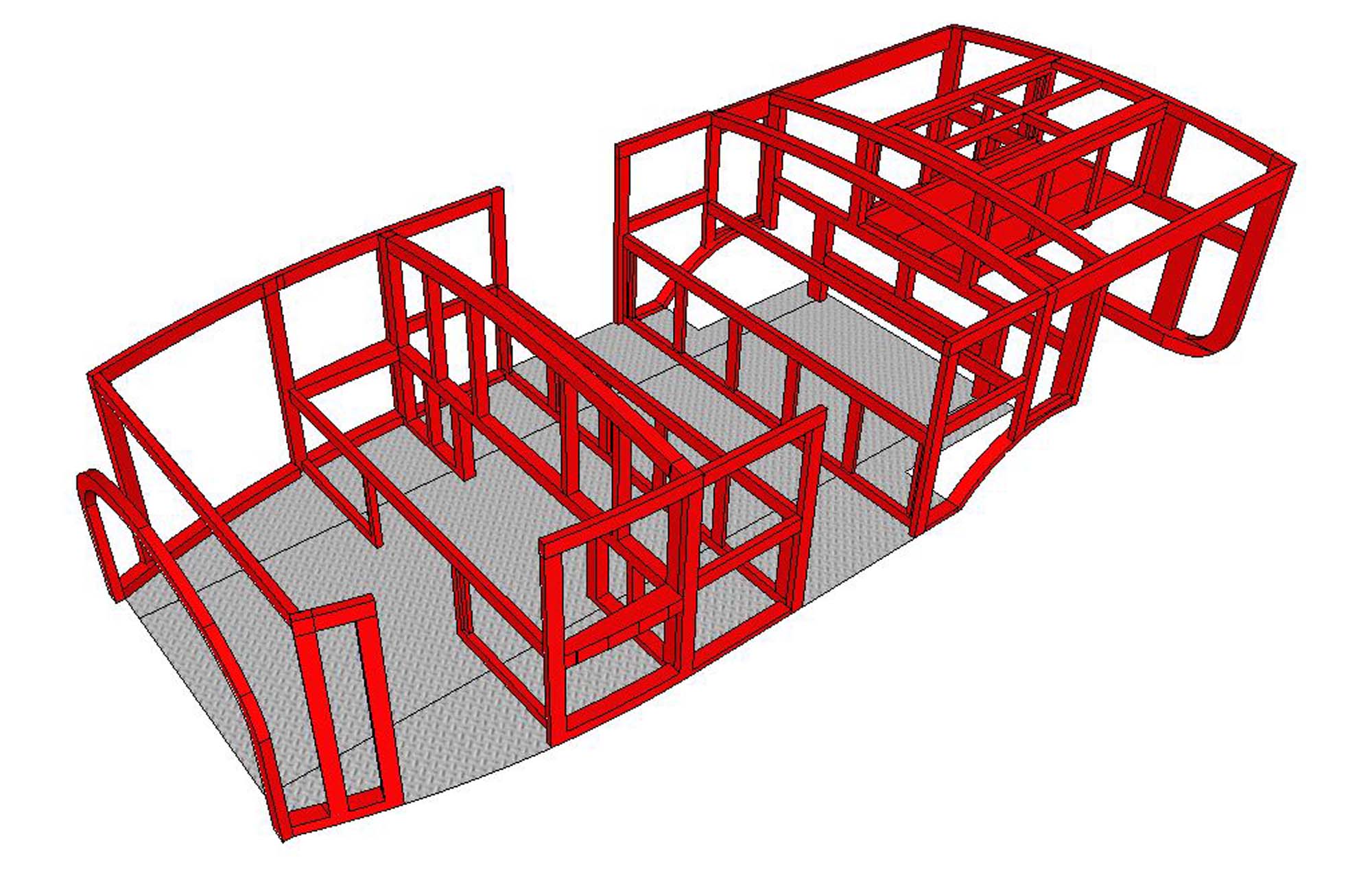 Der Aufbau wurde anhand einer Schablone erstellt, passt aber nun auch exakt auf das wirkliche Fahrzeug. Bis der vordere Teil des Aufbaus (bis zu den Mannschaftsraumtüren)fertig ist muss nun noch die Sitzbank und die Innenverkleidung hergestellt werden. Auch im Bereich der vorderen Sitze muss der Kraftstofftank noch eingepasst werden. Fast der ganze Aufbau musste rekonstruiert werden, da bis auf einige Teile der Sitzbänke nichts übrig geblieben war. Durch die alten Profilleisten konnten wir die frühere Höhe feststellen und die Form ergibt sich aus der unteren Konstruktion. Der Rest wurde anhand von zahlreichen Fotos nachgefertigt. Vor der Herstellung des Holzaufbaus wurde zuerst ein 3D-Modell des Holzaufbaus gezeichnet um eine bessere Vorstellung der Konstruktion zu bekommen und noch Details zu klären.
