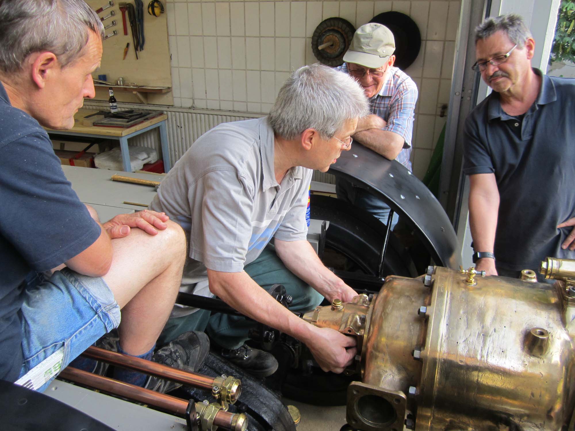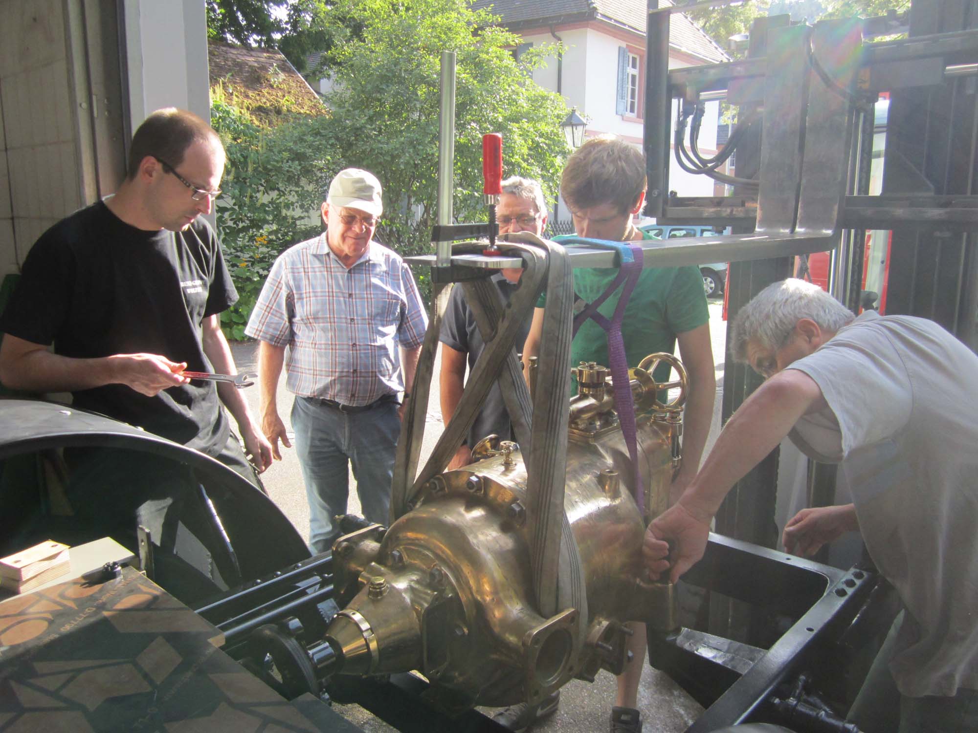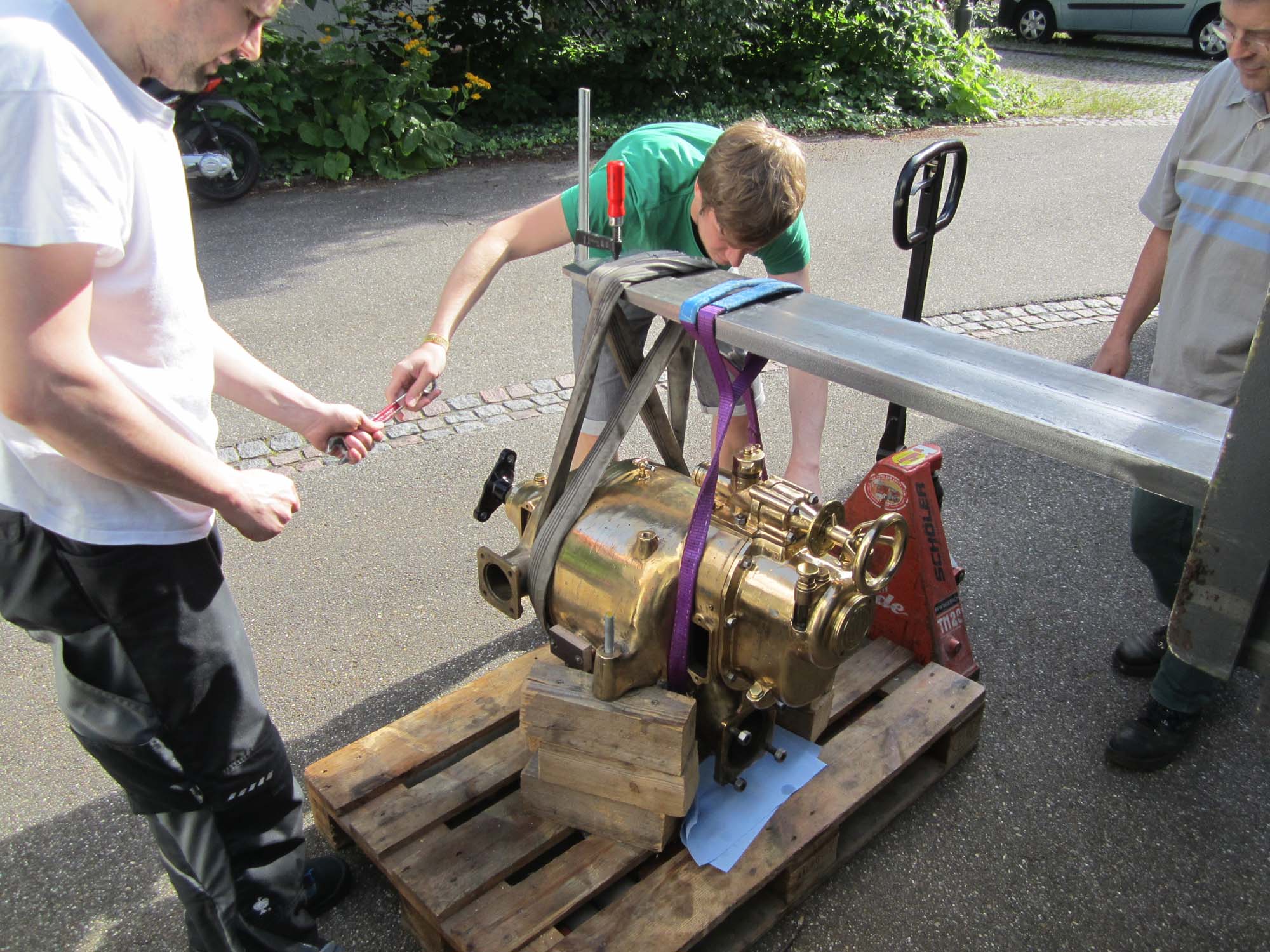 Nachdem die Pumpe nun komplett überholt, wurde sie am 6.7.2016 wieder in den Rahmen eingesetzt.