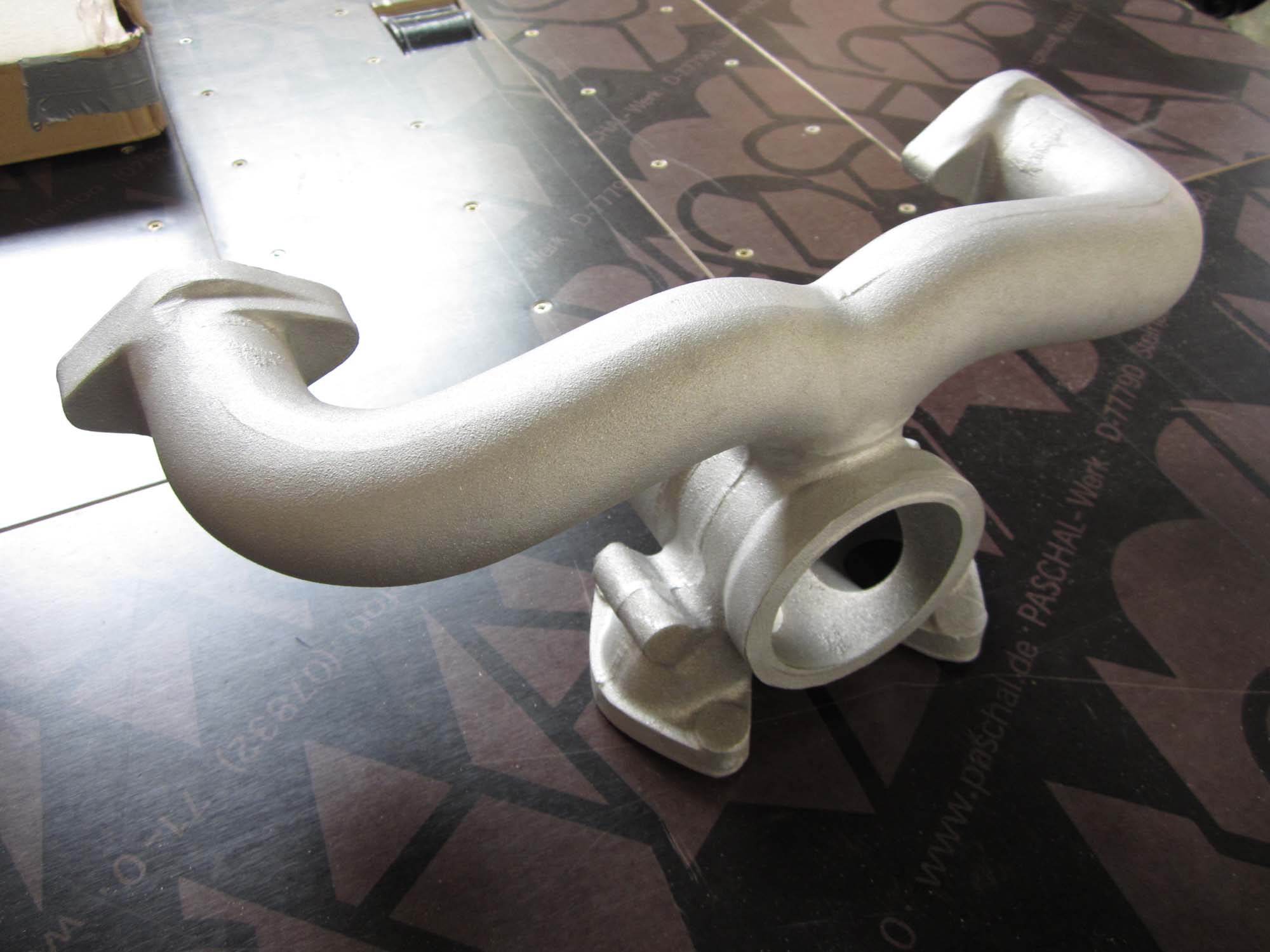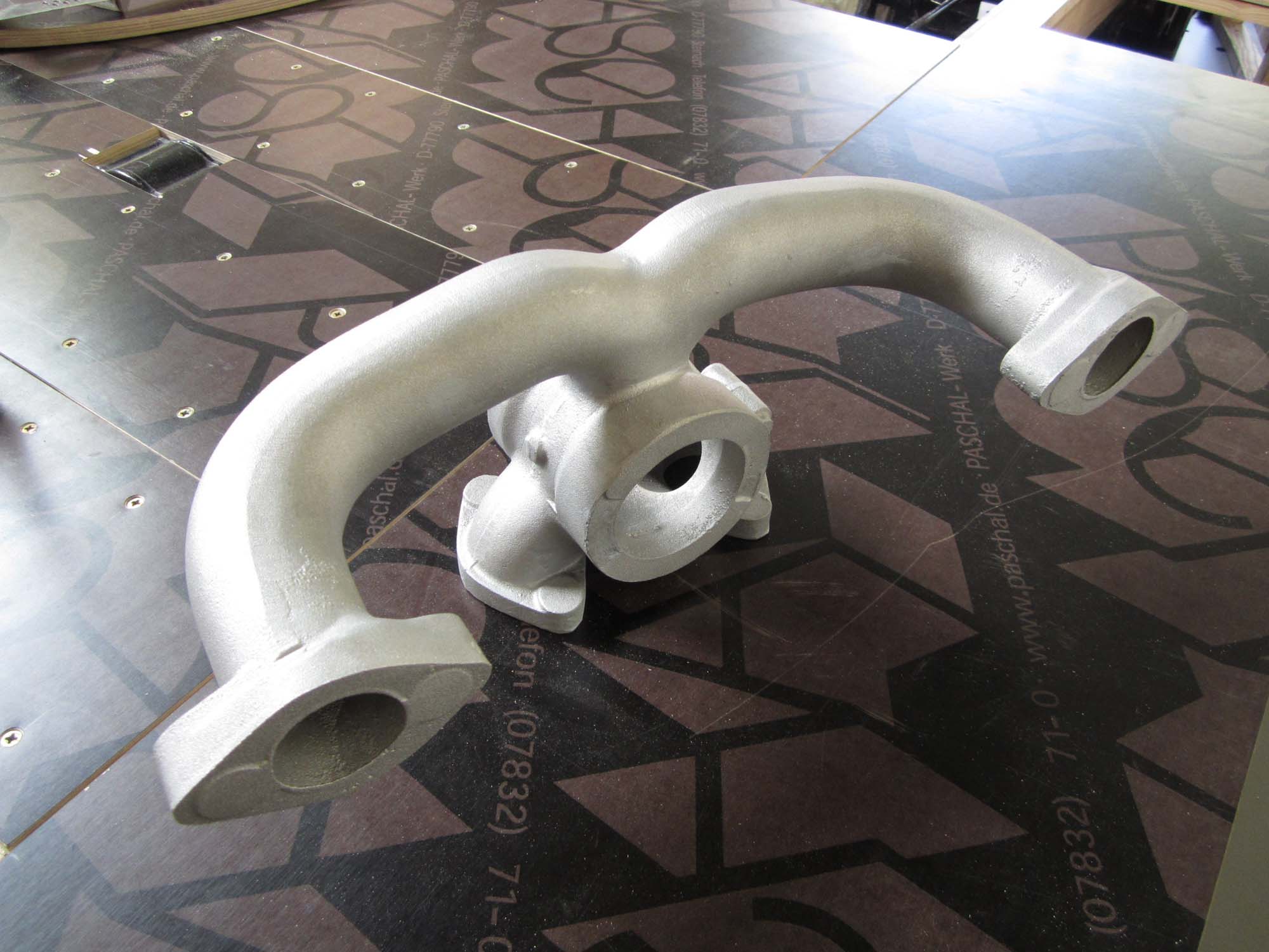 Der Kühlkreislauf des Motors wurde auf Dichtheit geprüft. Ein Riss in der Außenhülle des Motors brachte hier jedoch einen erheblichen Wasserverlust zum Vorschein, sodass diese Stelle repariert werden muss. Positiv hingegen sieht es aber beim Ansaugkrümmer aus. Der Nachguss aus Aluminium ist nun nahezu fertig. Nur noch eine Abdeckung auf der Rückseite fehlt. Der Ansaugkrümmer ist ein weiterer großer Schritt in Richtung Fertigstellung des Fahrzeuges.