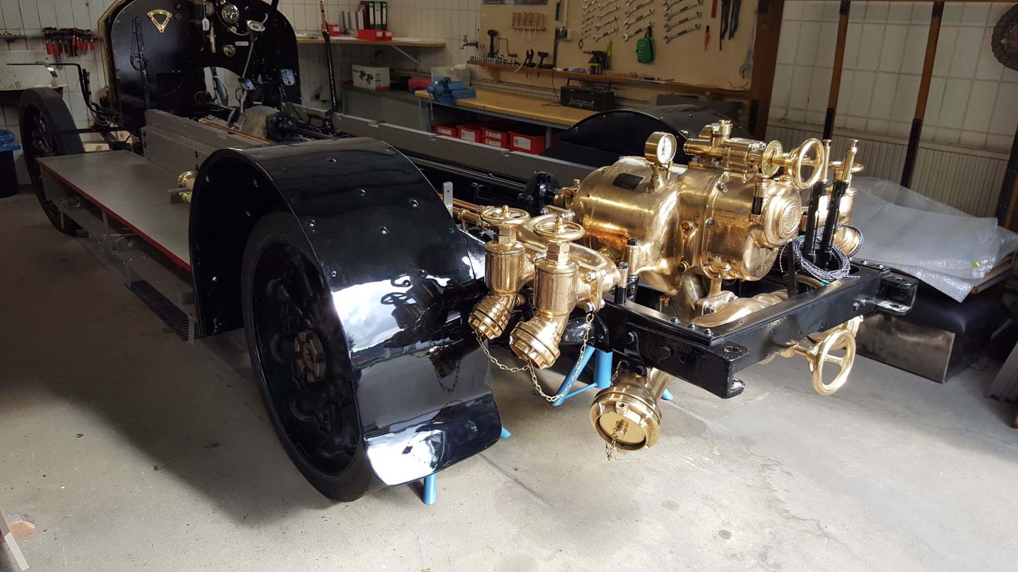 Es wurde nun auch mit der Montage der lackierten Kotflügel begonnen. Hier haben wir mit den beiden hinteren Kotflügeln begonnen. Aktuell sind wir als nächstes an den vorderen beiden Kotflügeln. Im Anschluss daran erfolgt dann der untere Teil der Gerätekästen.
