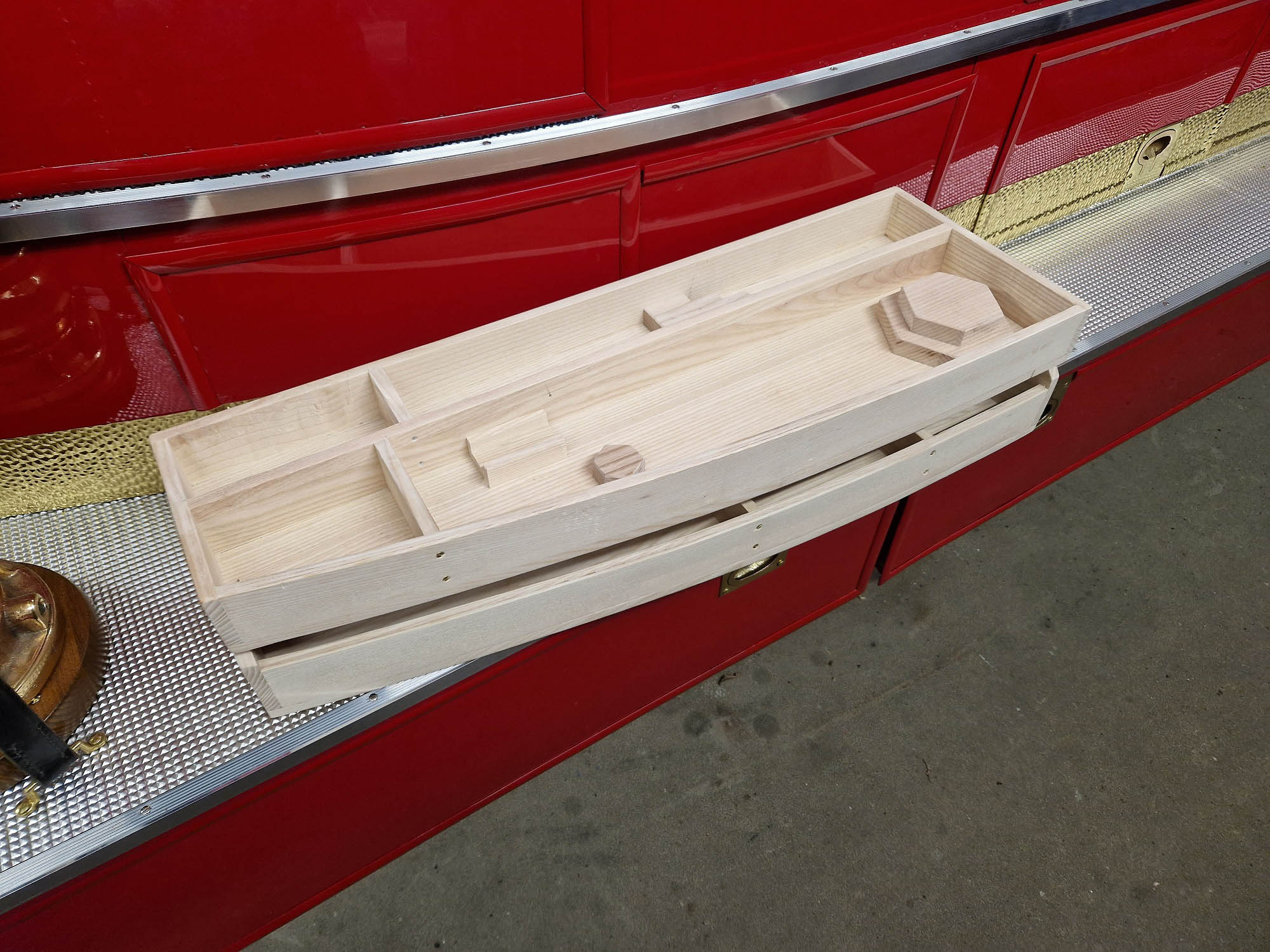 Auch die Werkzeugkästen für die Unterbringung von Bordwerkzeug und Ersatzteilen sind mittlerweile fertig und müssen nun nur noch gebeizt und lackiert werden.
