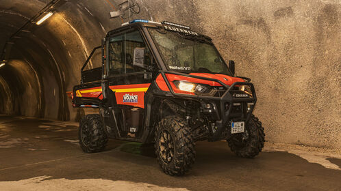 • Das UTV wurde speziell für Einsätze im Rettungsstollen des Reutherbergtunnels beschafft.