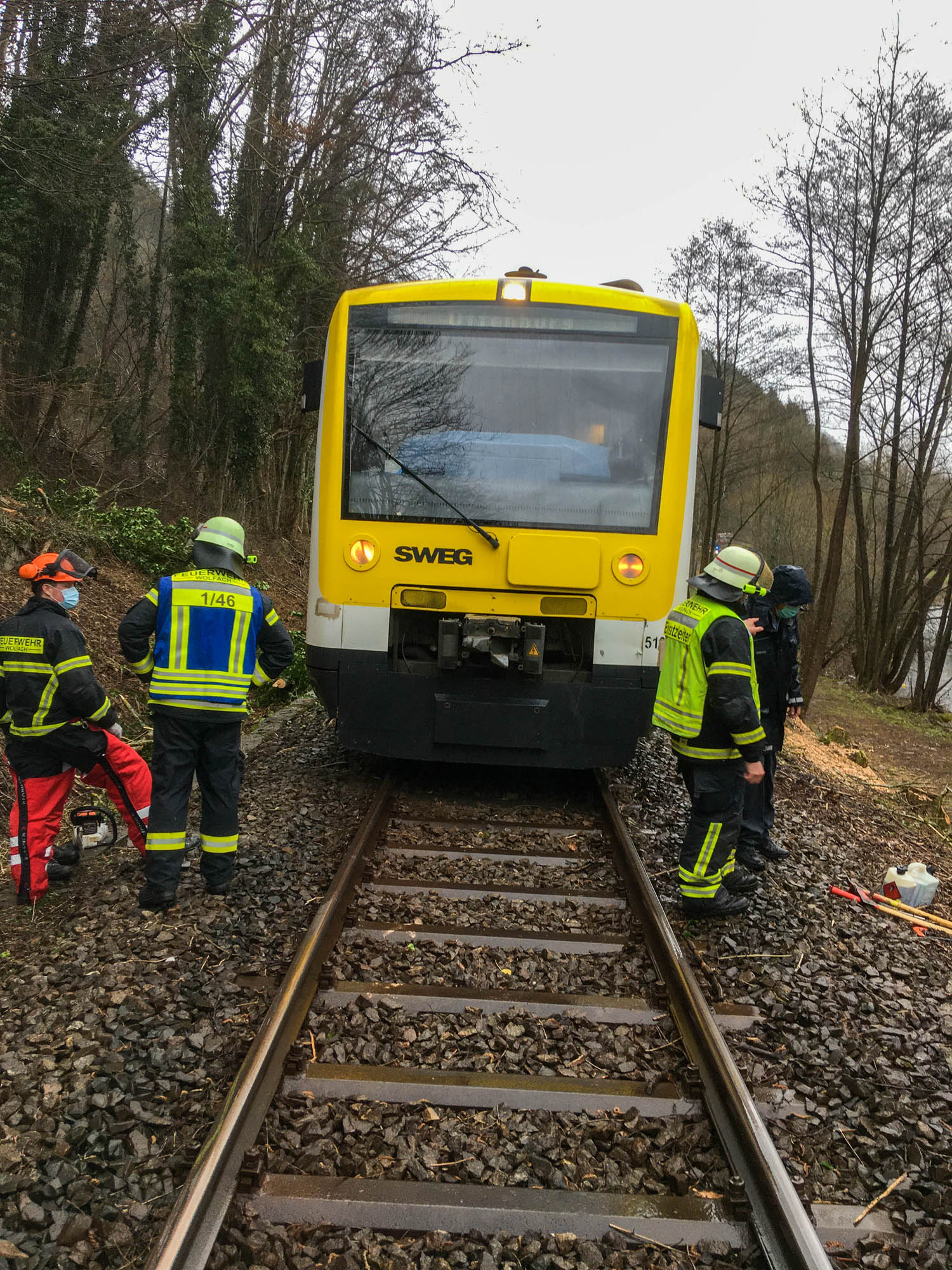 Infolge von Sturm Klaus ist ein Personenzug auf einen umgestürzten Baum aufgefahren. Nachdem klar war, dass keine Pesonen im Zug verletzt wurden, konnten wir uns darauf konzentrieren den Baum zu beseitigen, damit der Bahnverkehr mit etwas Verspätung wieder aufgenommen werden konnte.