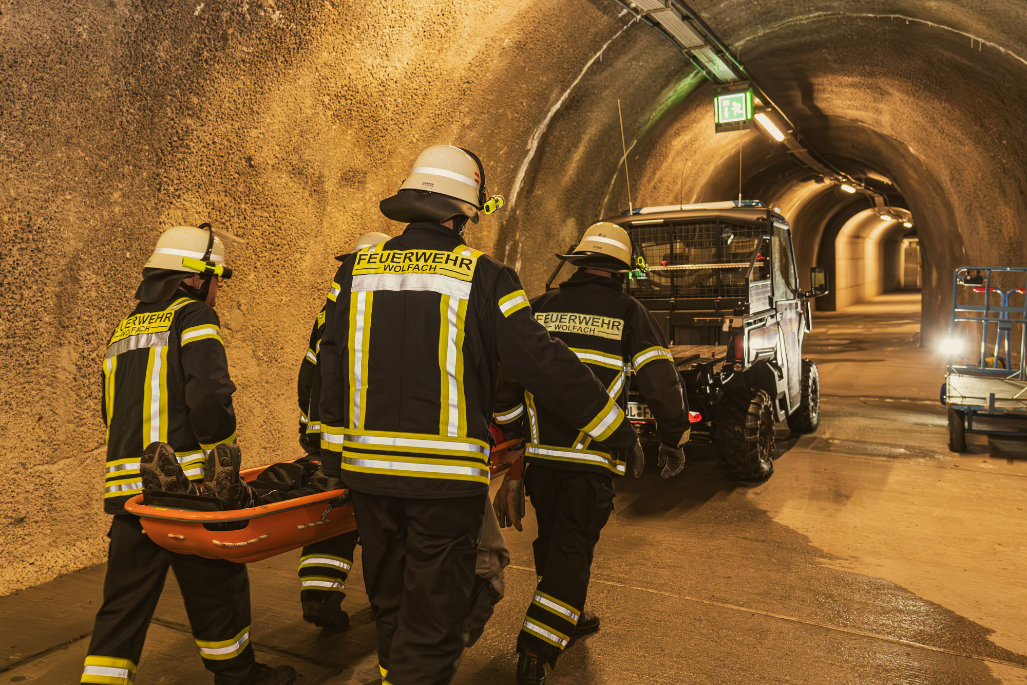 Der Bau des nicht durch Autos befahrbare Rettungsstollens am Reutherbergtunnel stellt die Einsatzkräfte vor die Herausforderung, verunfallte Personen rund einen Kilometer liegend über eine steile Rampe nach außen transportieren zu müssen. Das neue Fahrzeug wurde nun von der Stadt Wolfach beschafft und durch Kameraden der Feuerwehr in Eigenarbeit für dieses Einsatzszenario ausgerüstet und umgebaut.